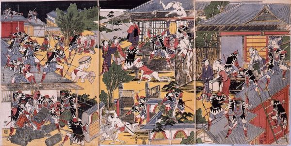「忠臣蔵討入」 大判錦絵3枚続き 1781-89(天明年間) 「すみだ北斎美術館」