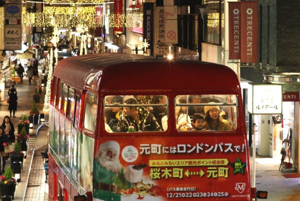 さらに、25日までの期間限定で赤い2階建てのロンドンバスの乗車イベントが行われています。元町通り3丁目付近と桜木町駅前ロータリーを発着点として1日あたり4往復します。乗車は無料です。