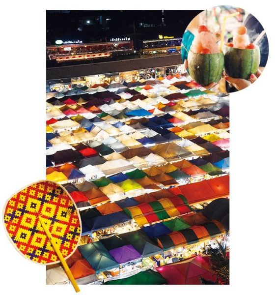 バンコクでぜひ行ってみたいのがナイトマーケット。2015年にオープンしたばかりの「ラチャダー鉄道市場」は、観光客も多いので安心して楽しめる。雑貨やフードの屋台など約1000軒ものお店が立ち並び、多くの人で賑わっている。カラフルなテントが立ち並ぶ夜景もナイトマーケットならではの光景。マーケット近くの駐車場から、ぜひ写真に収めたい。※木~日曜日の開催