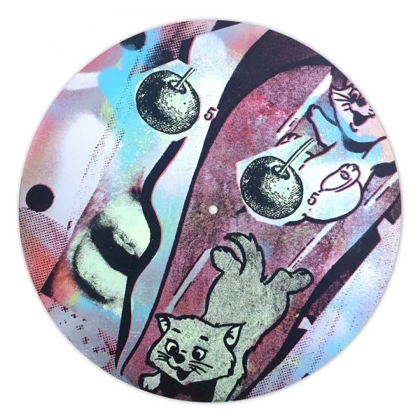 さらに、また別の作品にフォーカスしてみると、今度は表現の自由を感じることができます。例えば上記のアナログレコードを用いたアート作品。A.CEがアートと音楽の融合を目的に、ロンドンの街でフィールドレコーディングした音源を盤面(片面)にカットし、裏面にペインティングやプリントを施しました。