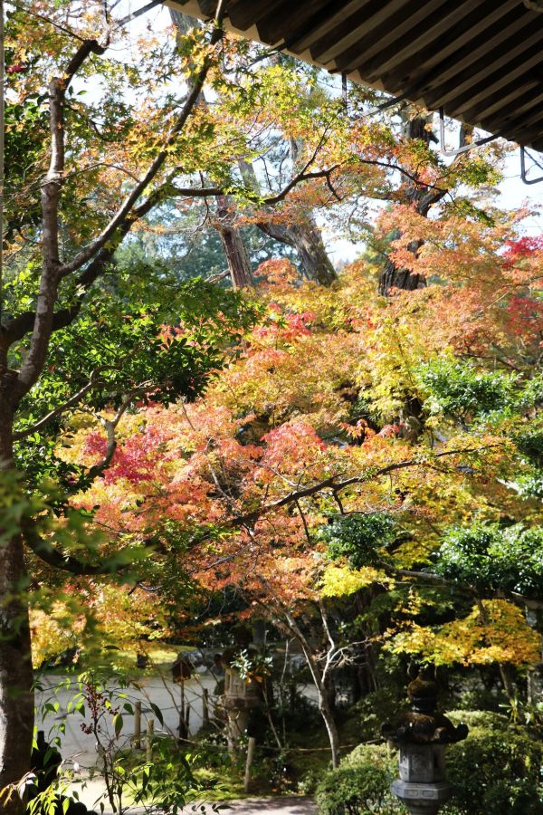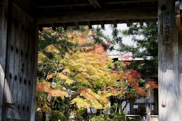 西明寺山門からまるで額縁に入ったよな紅葉が眺められます