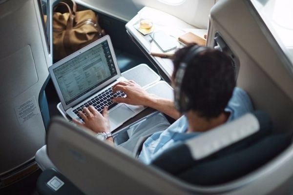 さらにスマートフォンやタブレットなど主要なWi-Fi対応機器によるインターネットへのアクセスも可能です(※1)。ビジネスクラスの快適さをSNSを使ってリアルタイムで伝えたり、ビジネス利用としても十分に活用することができるので、ぜひ利用してみてください。