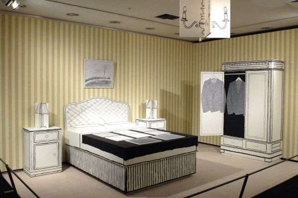 初めてのショールームとなったパリのホテルのベッドルームも再現されました