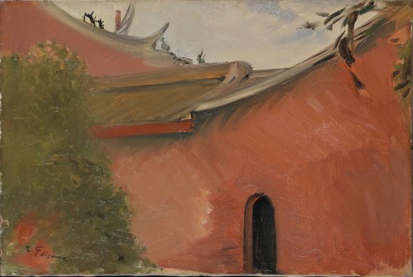イタリアの風景を描いた「糸杉」は、糸杉を単純化した黒っぽい色面でとらえ、台湾の建物をモチーフにした「台南聖廟」は、茶色の壁が強調され平面的に描写。晩年訪れた中国の風景を題材にした「耕到天」や「中国風景」は、細部へのこだわりはなく事物が抽象化されている。初期の陰影表現を用いた写実的な作品とはイメージが大きく異なり、藤島の懐の深さを示している。