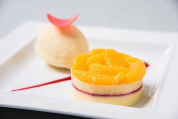 スイーツ系のメニューは、全5種類。ブルスケッタのように、プレーン、ショコラ、抹茶の3種類のカンパネラそれぞれにフルーツやチョコレートをのせた「カンパネラブルスケッタ」(900円)や、ラングドシャにアイスを挟んだ「カンパネラアイス」(780円)など、カンパネラをそのまま使ったものに加え、フランボワーズソースを重ねた「オレンジムース」(880円)やバニラとピスタチオのムースをチョコレートでコーティングしたドーム型の「ズコット」(880円)などがあります。