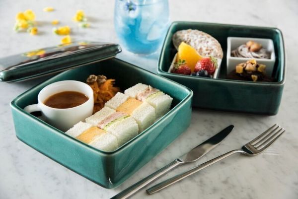 いろいろなものを少しずつ食べたい人には「アフタヌーンティーセット」(2300円)がオススメ。ブルーの陶器製重箱にサンドウィッチやスイーツ2種、デリ、スープが詰められ、ドリンク付き。テイクアウトをしたくなりますが、残念ながら店内のみです。