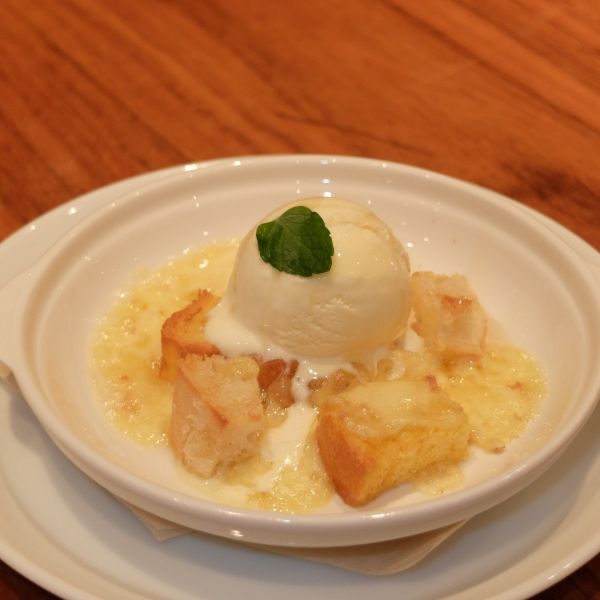 デザートもチーズを使った“ラクレットチーズとバニラアイスのハチミツがけ”。チーズの熱さ、しょっぱさ、ハチミツの甘さ、アイスの冷たさがコラボした不思議なおいしさです。
