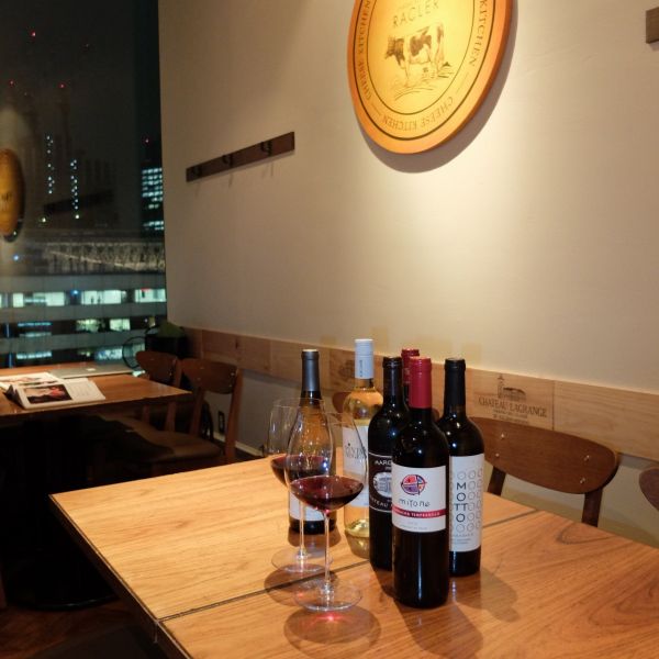 銀座店では、チーズ料理とともにワインも堪能できるよう、約50種類のワインをそろえています。ワインが劣化しない窒素ガス封入式ワインサーバーを導入したため、高級ワインもボトルでなく、グラスで提供できるため、それぞれのチーズ料理にあったワインを、手頃な価格でいろいろと試すことができます。