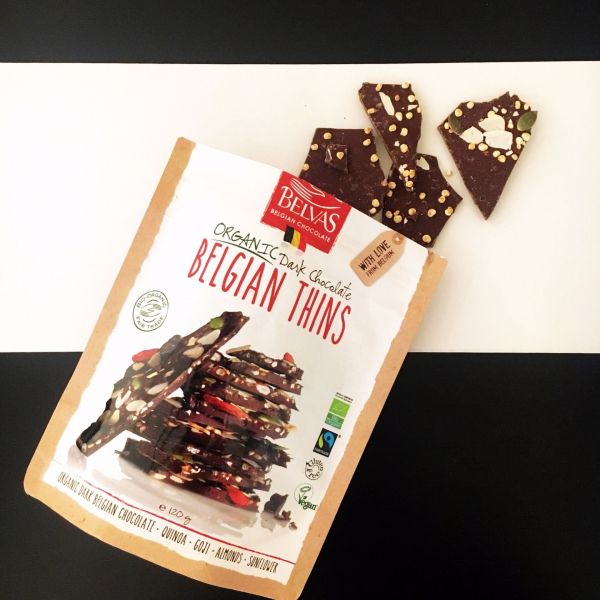 続いては、ベルギー発『BELVAS(ベルヴァス)』の「スーパーフードミックス ダークチョコレート」。キヌアパフやゴジベリーなどのスーパーフードや、かぼちゃのタネ、アーモンドなどが入った、割って食べるタイプのチョコレートです。