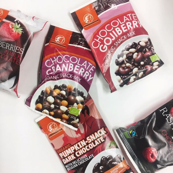 続いて紹介するのは、オーストリア発の『LANDGARTEN(ランドガルテン)』。1989年にオーガニックスナックを製造し始めたランドガルテンは、素材をローストする際、油を使用せず温風で焙煎。チョコレートには、ベルギー産の最高水準のものを厳選して使用しています。