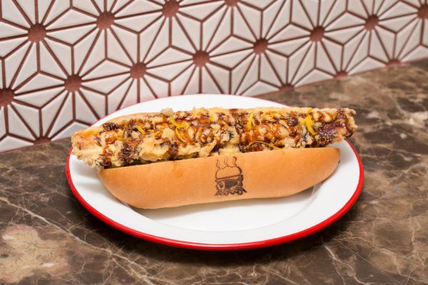このお店は、ミシュラン2つ星を獲得した銀座の人気鮨屋「銀座 青空(ハルタカ)」で長年経験を積んできた工藤慎也氏がプロデュース。オープン前からグルメな人々間で話題になっていました。メニューには「西京焼きの最強バーガー」(800円)や「昆布締めフィッシュバーガー」(600円)、「鮨屋が作る出汁巻き卵サンド」(700円)など、どれも目新しく、思わず写真を撮ってSNSにアップしたくなるようなフォトジェニックなバーガーがズラリ。バンズには、魚の骨を挟んだバンズから湯気が立ち上っている様子が描かれた店のアイコンの焼印が付いています。