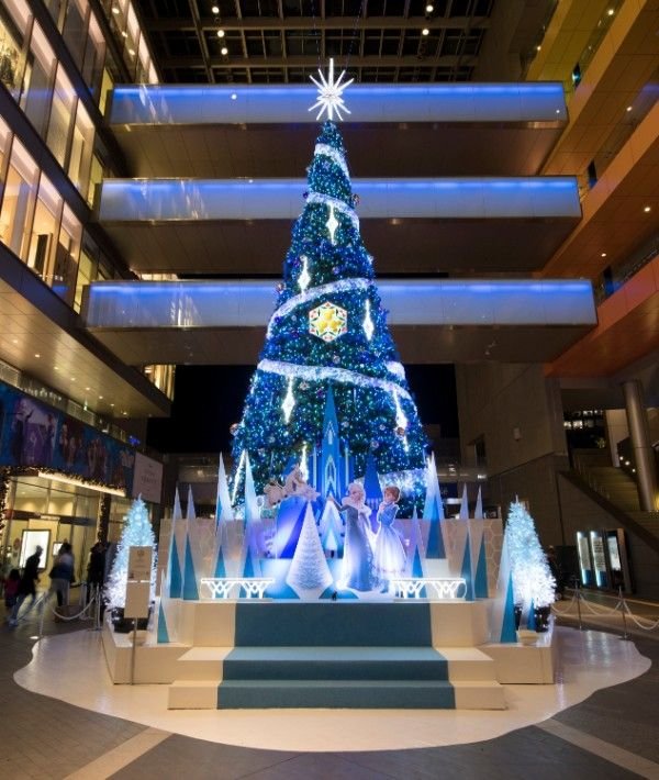 二子玉川ライズ・ショッピングセンター(世田谷区玉川)のテーマは、来年3月にディズニー/ピクサーのアニメ映画「リメンバー・ミー」と同時公開される短編アニメ映画「アナと雪の女王/家族の思い出」。高さ約14メートルのツリーでは、アナやエルサ、オラフたちと家族で過ごす、キラキラ光る雪と氷が美しい、心温まるクリスマスが表現されています。