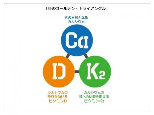 丈夫な骨づくりのコツは、「骨のゴールデン・トライアングル」と呼ばれる3つの栄養素、カルシウム・ビタミンD・ビタミンK2を一緒に摂ること。サバなどの青魚に含まれるビタミンDは腸管でのカルシウムの吸収を助け、ビタミンK2はカルシウムの骨への沈着を助けます。ビタミンK2の方がより高い効果が見込めると言われてますが、ビタミンK1にも同様の効果があり、今回のレシピで使ったかき菜などの緑黄色野菜に多く含まれています。