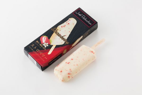 具材とソースを〝マーブル状〟に混ぜる新技術と、フランス産最高級チョコレートやバニラビーンズ100%のバニラペーストなど〝妥協のない原料〟から誕生したのは、「ジョエル・ロブション ショコラ~オレンジと練乳のソースで~」と「ジョエル・ロブション ストロベリー~タヒチ産バニラとホワイトチョコで~」(各300円)。カカオニブやフリーズドライイチゴで〝アクセントになる食感〟を実現したデザートのようなこのアイスバーを口に運ぶと、いろいろな味や食感が波のように押し寄せてきて、頬が緩むこと間違いなしです。