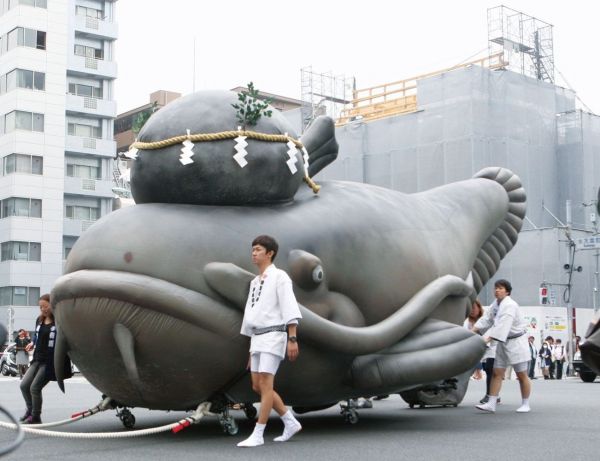 神田明神に祀られた神様、“だいこく様”“えびす様”“まさかど様”を三基の神輿に乗せて、下町をめぐる大行列