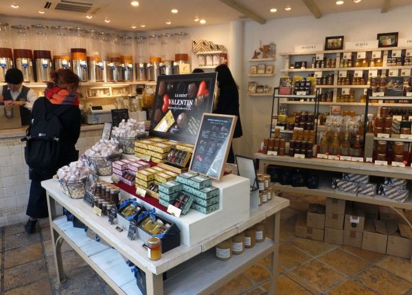 ちなみに、店から駅への道中には、世界10カ国約80種のハチミツを扱う「ラベイユ本店」もあります。ハチミツのほか、ハチミツのお酒、ナッツやレモンのハチミツ漬け、ジャム、ドリンクといったハチミツ加工品も販売されており、すべての商品をテイスティングできます。また、一部の商品は量り売りもしており、瓶を持ち込めばお買い得な値段で詰めてくれます。パティスリー ドゥ ラベイユのお気に入りのお菓子に使われているハチミツをこちらでゲットして、自宅でトーストやミルク、料理と一緒に楽しむこともできますよ。