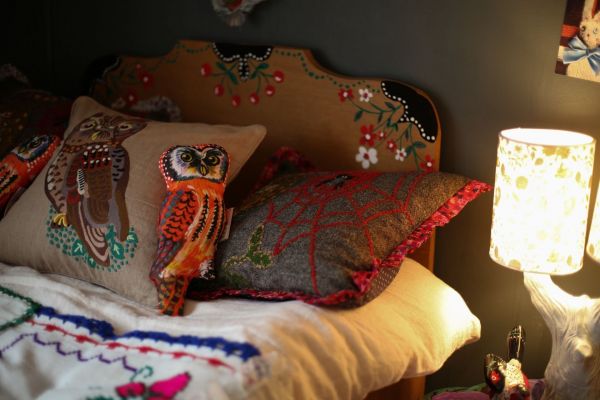 ナタリーさんの家をイメージした店内には、ベッドやテーブル、肘掛け椅子などの家具が配置され、ナタリーさんのプライベート写真も貼り付けられています。そんなナタリーワールドに、子供の頃の思い出や毎日の暮らしの中からインスピレーションを得るという彼女がデザインしたカップや皿、スカーフ、タオル、ラグマット、洋服、人形、陶器などが所狭しと並んでいます。また、ナタリーさんの世界観をイメージして、米ニューヨークの蚤の市で買い付けられた雑貨も買うことができます。価格は800円位から。