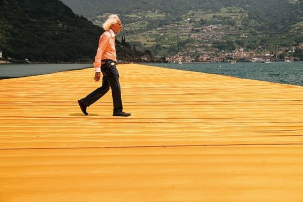 フローティング・ピアーズ、イタリア・イセオ湖 2014-16でのクリスト(Photo: Wolfgang Volz)©Christo