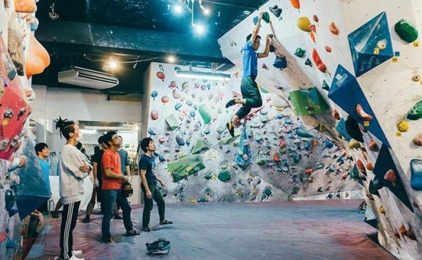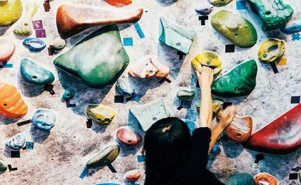 ボルダリングがブームになる前から、この地で営業しているという老舗クライミングジム。高さは最高で4m、95坪の面積を誇り、プロが練習として訪れることも多いそう。壁に並んだホールドと呼ばれるカラフルなパーツは登っていくコースを示しており、赤から白まで色別に難易度が設定されている。指定のルートを登っていき、一番上のホールドを両手で掴んだら、そのコースは達成。初めての人でも、ルールから登り方まで丁寧にレクチャーしてくれるので、誰でもすぐに楽しめる。1人で果敢に挑んでもみんなで訪れてどれだけ登れたかを競っても楽しい。