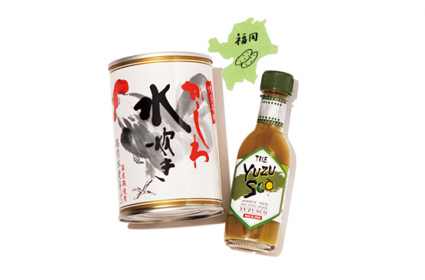 水炊きは、鶏をまるごと煮こんだ出汁で食べるシンプルな鍋。「博多かしわ水炊き」は60年以上続く伝統の鍋つゆで、透明な出汁にコク深い鶏(かしわ)の成分が凝縮されていて、鍋はもちろん、煮物やおでんの出汁にしてもおいしい。液体になったゆず胡椒「ゆずすこ」を少しつけて食べると、また違った味わいに。