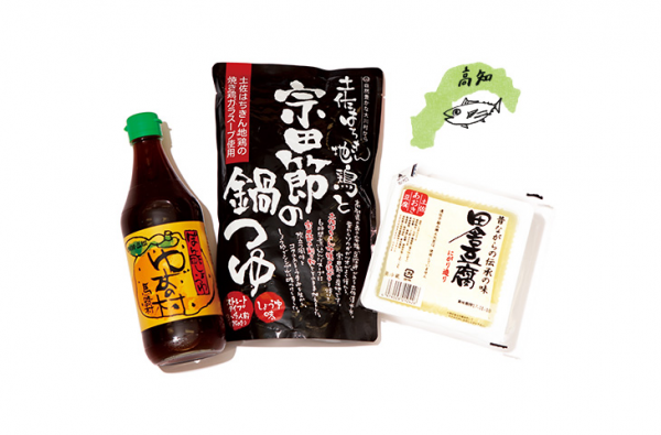高知といえば、やっぱりカツオ。でも、実は鶏ベースの出汁もおいしい。はちきん地鶏を煮込んだスープに、ソウダガツオの削り節を加えた鍋つゆがおすすめだ。田舎豆腐と呼ばれる、木綿豆腐よりも固めな豆腐も高知ならでは。特産のゆずを使ったぽん酢しょうゆで楽しんだあとのシメは、雑炊にしても、うどんにしても。