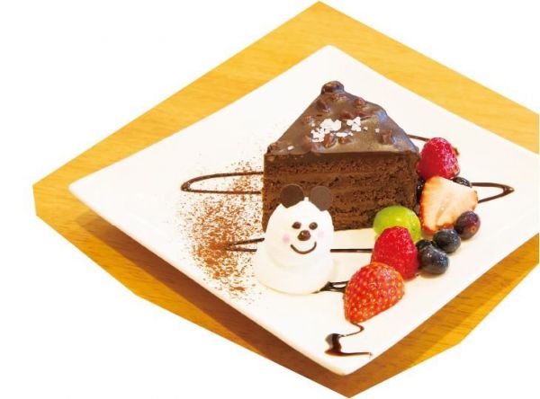 僕が宇宙一ウマシと信じて疑わないチョコケーキが、この「ブラックマウンテン」。外はガッチリチョコのコーティング、中は何層にも重なるチョコスポンジ生地、そこへ大粒岩塩がバラバラっと!甘じょっぱウマシ!意外にも、赤ワインとの相性バッチリ。お店でいただくと、ゆるカワキャラとフルーツをデコしてくれます。