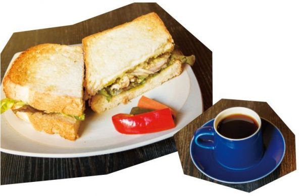 チキンとオリーブのサンドイッチ 450円、マンデリン 550円