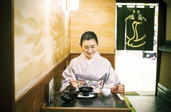 「最後は、昔から新橋の芸者衆がお稽古帰りに立ち寄っていた老舗の甘味処です。わたしもお姉さんによく連れて行っていただきました。お汁粉がとてもおいしく、滑らかなこしあんの白玉汁粉がお気に入りなんです。あ〜やっぱり、いつても変わらない味ですね」