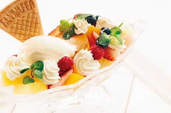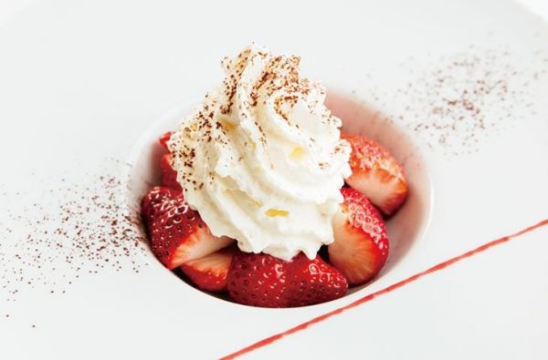 プリンアラモードには、季節に合わせて旬のフルーツが5〜6種類使われている。硬めのプリンとフレッシュなフルーツの相性は抜群/プリンアラモード 1850円(サービス料、税込)/ストロベリーロマノフ 1750(サービス料、税込) ※ストロベリーフェア2018は、3月31日(土)まで開催