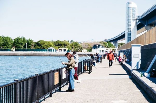 「若洲公園」のサイクリングコースを、自転車で5分ほど行ったところにある海釣り場。600mほど続く堤防と、キャンプ場前の護岸で釣りが楽しめる。釣り竿や餌、仕掛けはセットで借りられるほか、持ち込みも自由。4月は、クロダイやメバル、マハゼなどが釣れるそう。気を長くして、竿先が動くのをじっと待とう。