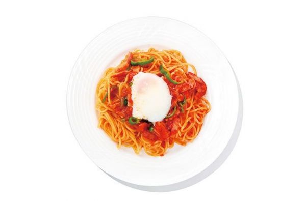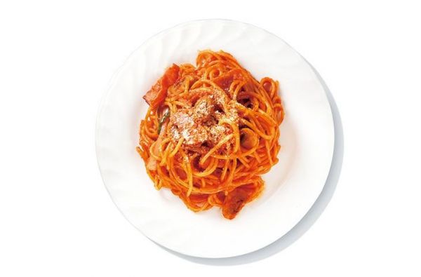 具材やソースと炒めたうえ、さらに自家製ソースをかけたパスタ店のナポリタン。具材はベーコンやピーマン、玉ねぎと基本を抑えつつ、麺はデュラム小麦からつくられたモチモチ食感の生パスタを使用。自家製トマトソースは、トマト本来の甘みと酸味が生かされているので、さっぱりと食べられる。さらにここへ半熟卵をのせれば、よりまろやかな味わいに。トマト好きにおすすめのナポリタン。