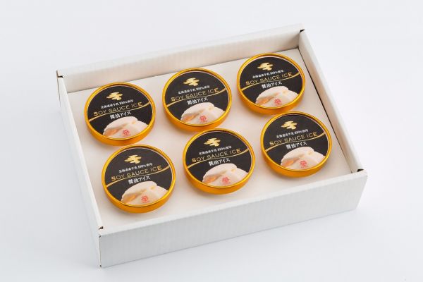 だし醤油のパイオニアとして知られる寛政元年(1789年)創業の鎌田(かまだ)醤油[本社・香川県坂出市]の本醸造特級醤油を使った塩キャラメルのような味わいの「醤油アイス」が19日(木)から、80g×6個のセットで販売されます。