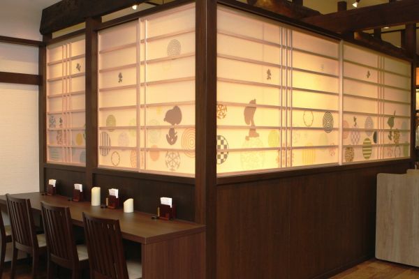 スヌーピーをあしらった障子が楽しい2階のカフェ(撮影・田中幸美 ©2016Peanuts)