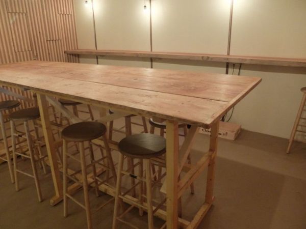 店の中心には、ヨーロッパのチーズ工場で使われていたという板で作った大きなテーブルが。抜栓料(1本3000円)を払えば、購入したワインもその場で飲めますし、日替わりのグラスワインも楽しめます。